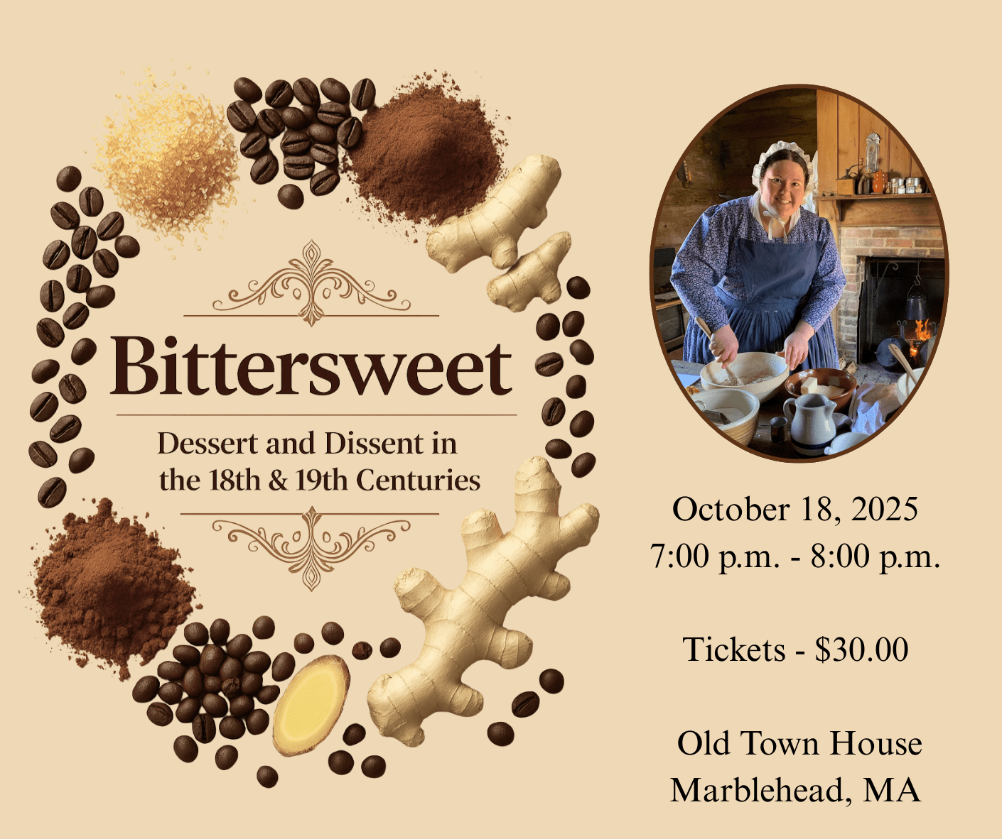 This presentation explores how ordinary men and women expressed their resistance to slavery through the boycott of goods such as sugar, molasses, cocoa, coffee, and spices. Throughout the evening, guests will enjoy desserts that bring the history to life and learn about the cooking process, including apple pie, chocolate tart, spice cake, gingerbread, and raisin...