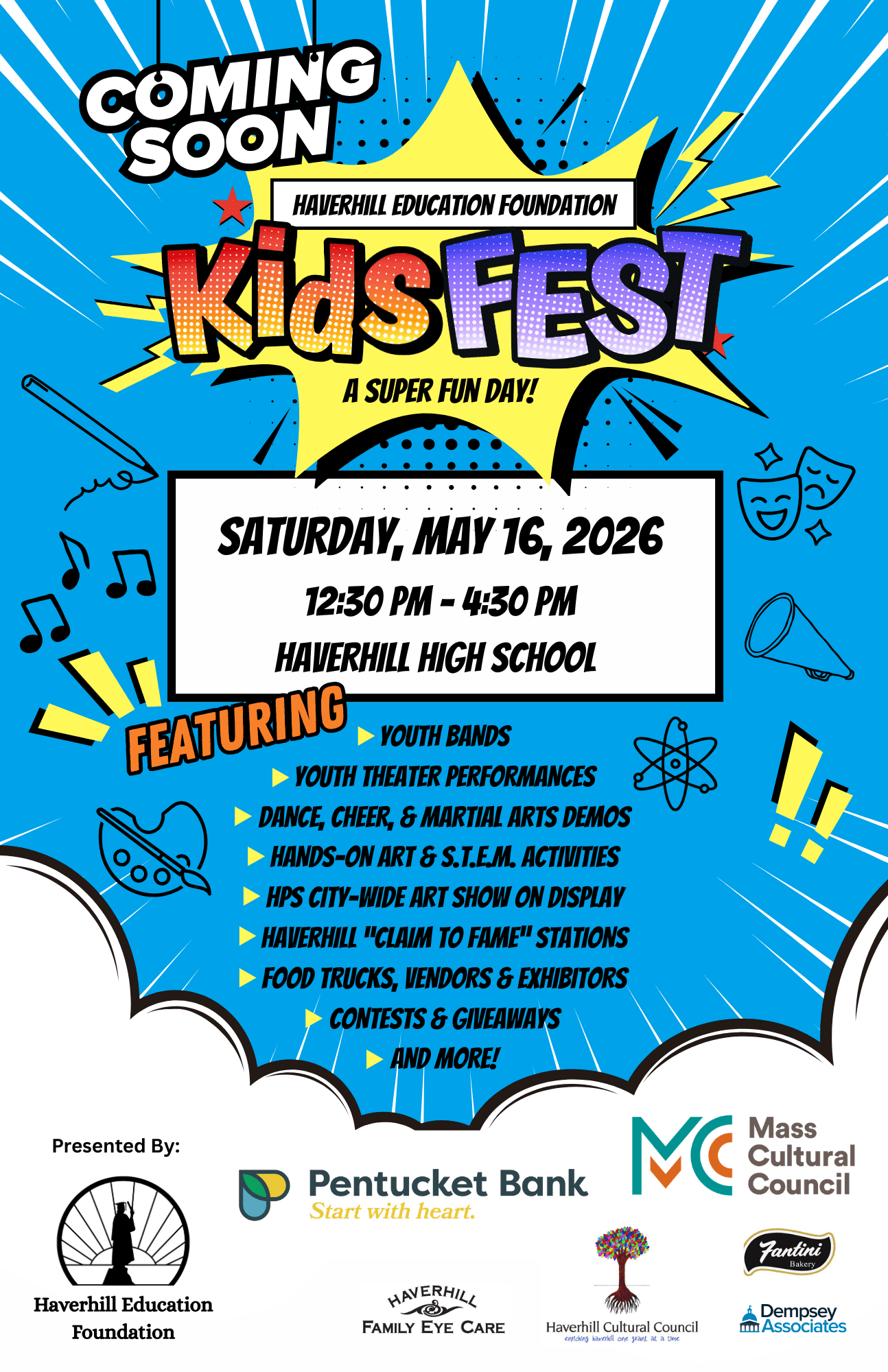 KidsFEST is more than just an event; it is a celebration of childhood, creativity, and community. In bringing back this beloved Haverhill tradition for 2026, Haverhill Education Foundation aims to create a vibrant, inclusive family festival featuring: live performances, a diverse array of vendors, friendly competitions, interactive shows and activities, and a spotlight on Haverhill’s...