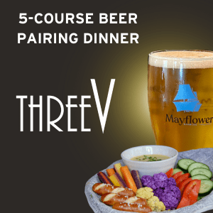 Join us for a 5-course pairing dinner with Mayflower Brewing. 5 courses of delicious food prepared by ThreeV’s culinary team, paired with 5 brews from Mayflower brewing. Enjoy exclusive access to the VISCO Italian Pilsner, brewed especially for our group of restaurants in honor of our 50th anniversary and only available when you dine with us. Get early access to the yet-to-be released Bear Tide Oyster Stout, Mayflower’s latest collaboration brew with local oyster harvester Bear Tide.