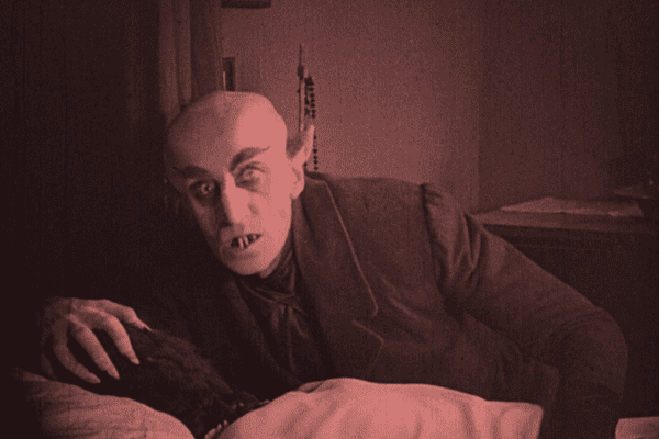 In this German Expressionist, Silent Film: Vampire Count Orlok expresses interest in a new residence and real estate agent Hutter’s wife.