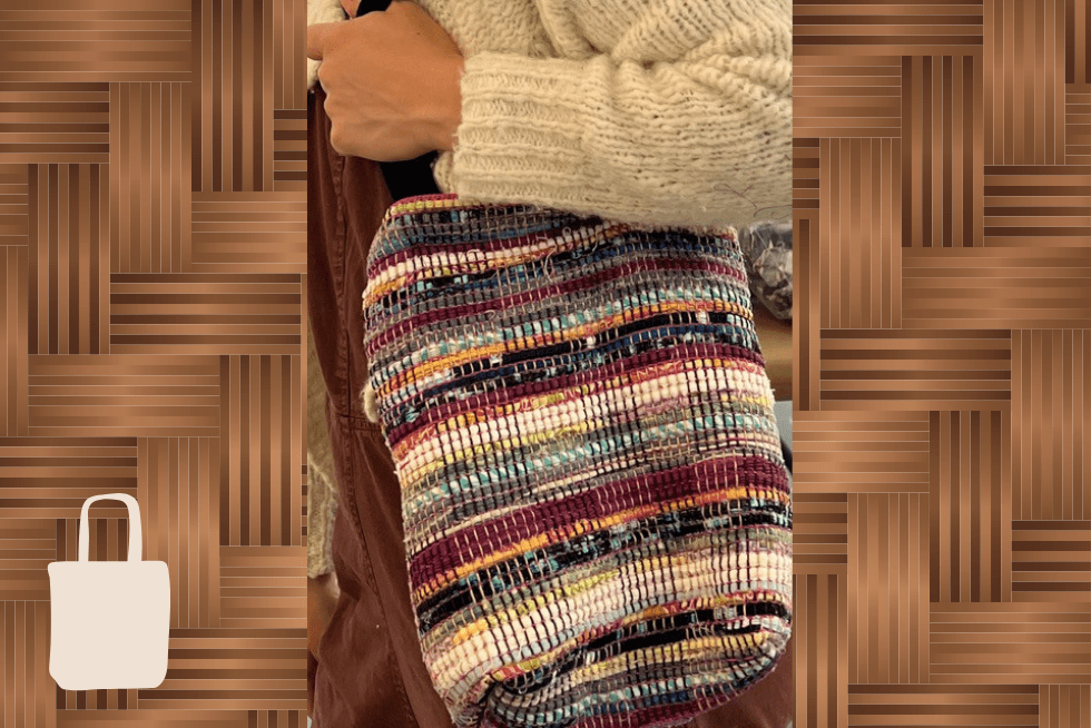Learn to weave your own tote bag on a pre-warped rigid heddle loom using repurposed cotton strips of fabric, along with a wide selection of quality yarns. You will weave and create your own individual design which will be customized to your aesthetic. Once the fabric has been woven, Dahlia will assemble the tote bag at her studio (apply the handles and shape the bag) and ship it to you.
