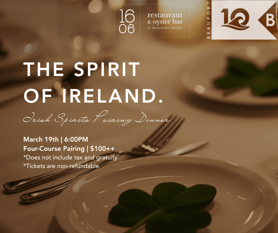 Celebrate St. Patrick’s Day at 1606 Restaurant & Oyster Bar on Sunday, March 15th, with live music from 12:00PM–3:00PM and traditional Irish fare served with harbor views. Enjoy classic Irish features including Stilton and Apple Salad, Hot Smoked Salmon with Molasses Brown Bread, a classic Boiled Dinner with Corned Beef and Braised Cabbage, and hearty...